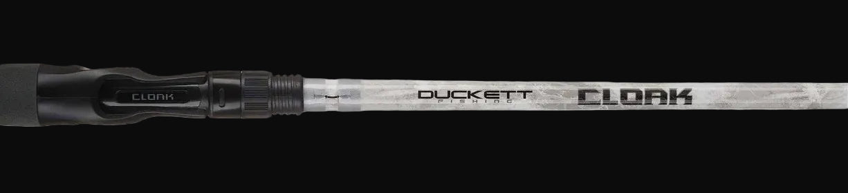 Affordably priced and fitted with highly refined components, the Duckett Fishing Cloak Casting Rods are ideal for fishing jigs, spinnerbaits, plastics, and much more. Sporting a sleek Gunters Veil camo pattern around the grips, Cloak Rods are constructed using lightweight and sensitive 24/30-ton graphite multi-modulus blanks for acute bite sensitivity and pinpoint presentations. Further promoting superior casting smoothness, every model boasts insert-less micro guides arranged using AI for the absolute pinnacle of performance without the worry of popped inserts.