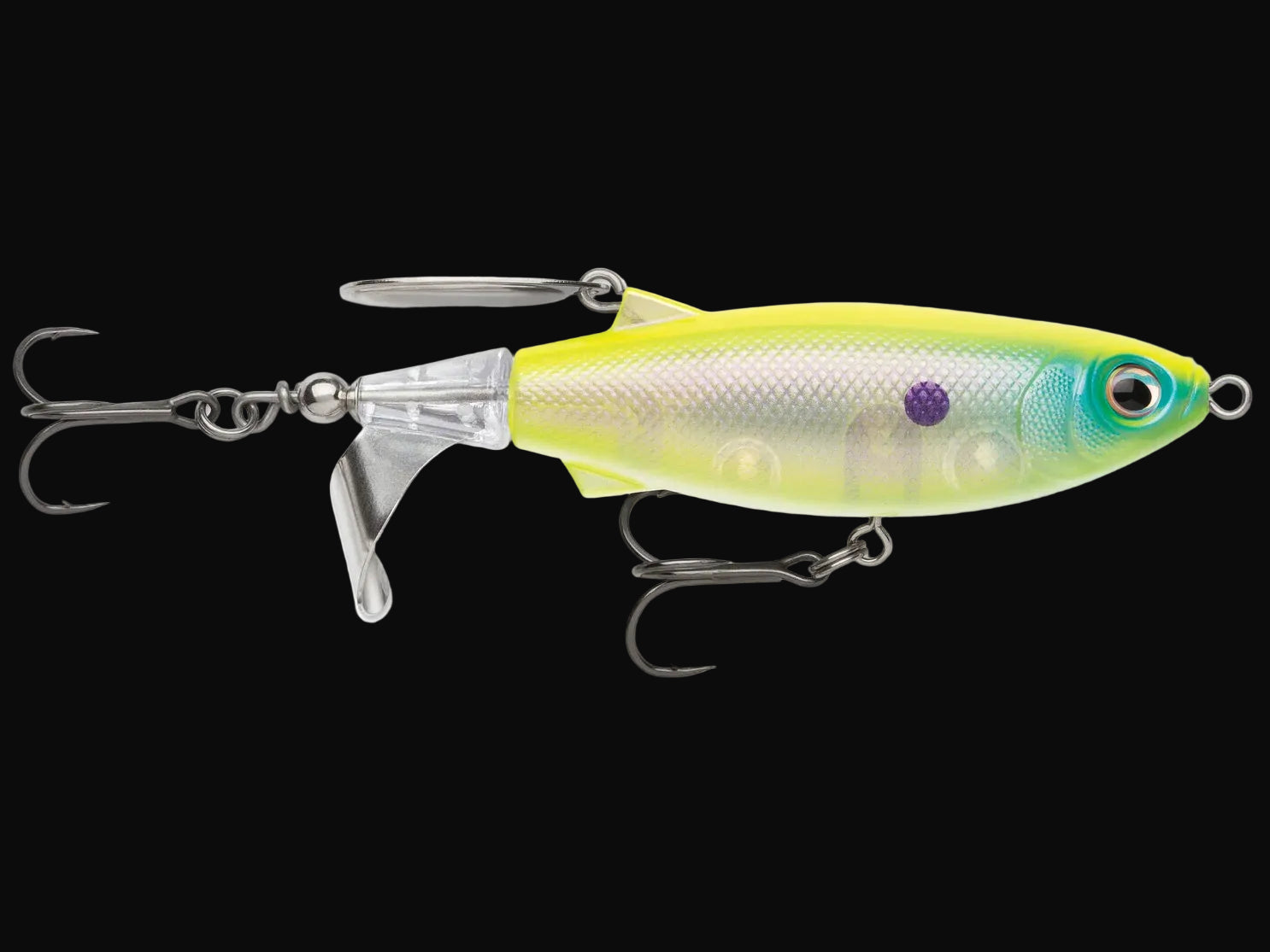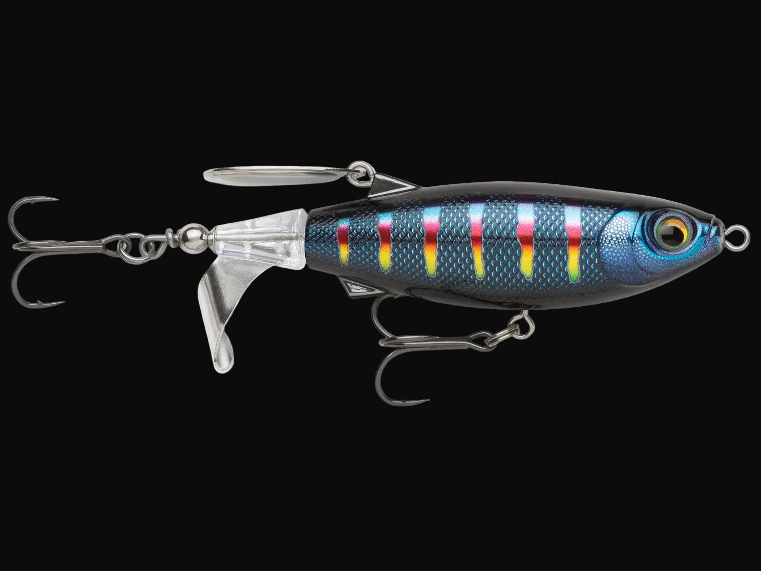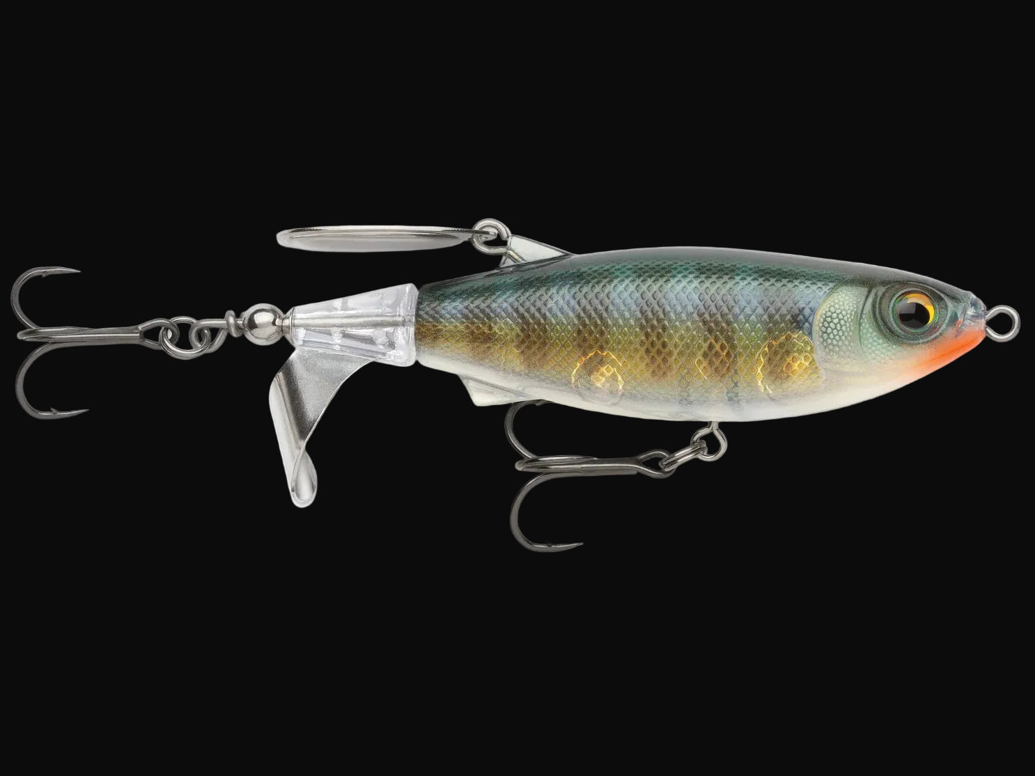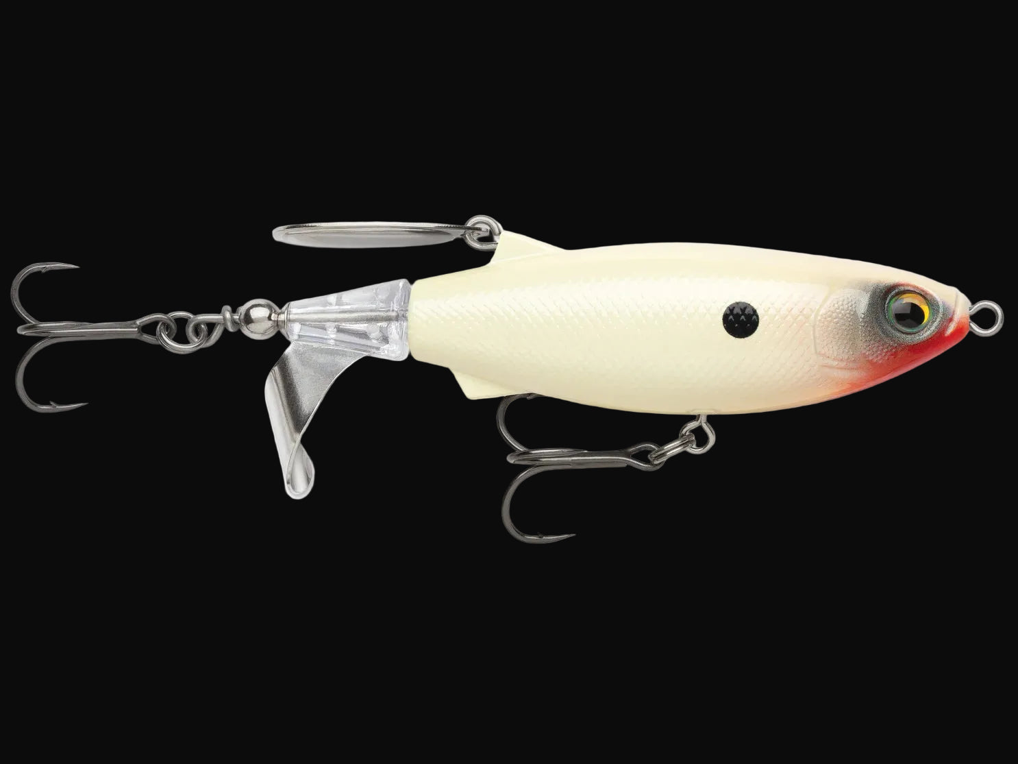 Designed by one of the most meticulous anglers in the industry, Jacob Wheeler, the Rapala Claptail 110 is built with a metal prop and trailing back blade that collide on the retrieve to produce a unique two-tone fish-attracting sound. Featuring a durable plastic body weighted to ensure long casts and consistent retrieves, the Claptail 110 creates a wealth of topwater commotion to make big fish rise to the surface for explosive topwater bites.